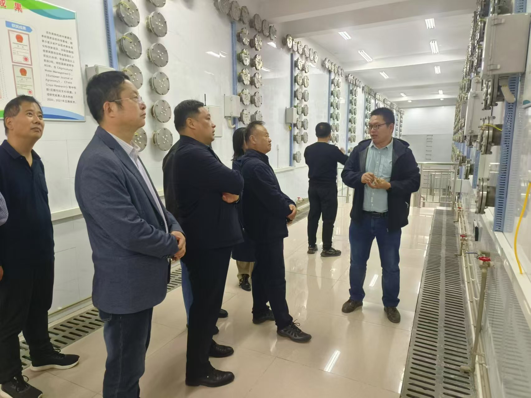 魯所長(zhǎng)一行首先參觀了灌溉所灌溉展示園。王景雷所長(zhǎng)詳細(xì)介紹了各類灌溉節(jié)水技術(shù)的應(yīng)用場(chǎng)景及節(jié)水效果,就在旱作農(nóng)業(yè)中精準(zhǔn)應(yīng)用灌溉技術(shù)進(jìn)行了交流。隨后,參觀了中國(guó)農(nóng)科院中原中心、農(nóng)業(yè)農(nóng)村部節(jié)水灌溉工程重點(diǎn)實(shí)驗(yàn)室、水利部新鄉(xiāng)灌溉實(shí)驗(yàn)野外科學(xué)觀測(cè)站、新鄉(xiāng)綜合試驗(yàn)基地以及灌溉所地中滲透儀群組等,通過(guò)實(shí)地考察和聆聽(tīng)講解,深入了解了先進(jìn)的科研設(shè)備和前沿的科研成果,學(xué)習(xí)到了高效的科研管理經(jīng)驗(yàn)。在中國(guó)農(nóng)科院新鄉(xiāng)精神展館,雙方圍繞加強(qiáng)黨建引領(lǐng)、促進(jìn)黨業(yè)融合、踐行“支部建在團(tuán)隊(duì)上”以及提煉科學(xué)家精神進(jìn)行了交流?,F(xiàn)場(chǎng),通過(guò)參觀珍貴歷史資料和實(shí)物展示,學(xué)習(xí)并感受了老一輩科學(xué)家扎根農(nóng)業(yè)科研一線、艱苦奮斗、無(wú)私奉獻(xiàn)的精神。最后,雙方圍繞“十五五”發(fā)展規(guī)劃、科技創(chuàng)新、成果轉(zhuǎn)化、人才培養(yǎng)、職稱評(píng)聘、試驗(yàn)站綜合管理等方面展開(kāi)了討論.