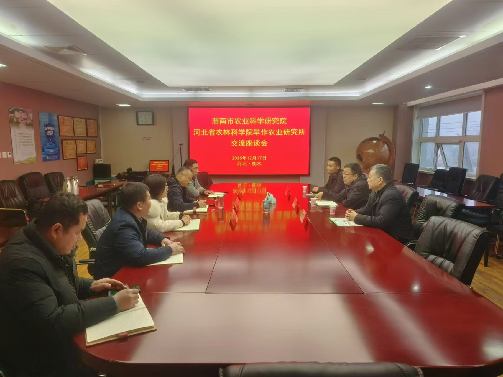 2025年12月17日,渭南市農(nóng)業(yè)科學研究院王楊軍院長一行到旱作所進行調(diào)研交流,旱作所所長魯關(guān)立、黨總支書記李偉及相關(guān)科室人員陪同調(diào)研。